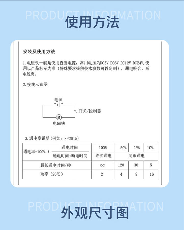 電流: 0.6A 通電率: 100%通電 彈簧回力: 吸力: